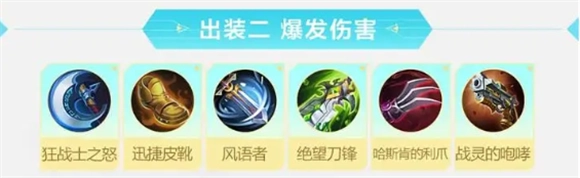 2、爆发伤害流:狂战士之怒、迅捷皮靴、风语者、绝望刀锋、哈斯肯的利爪、战灵的咆哮