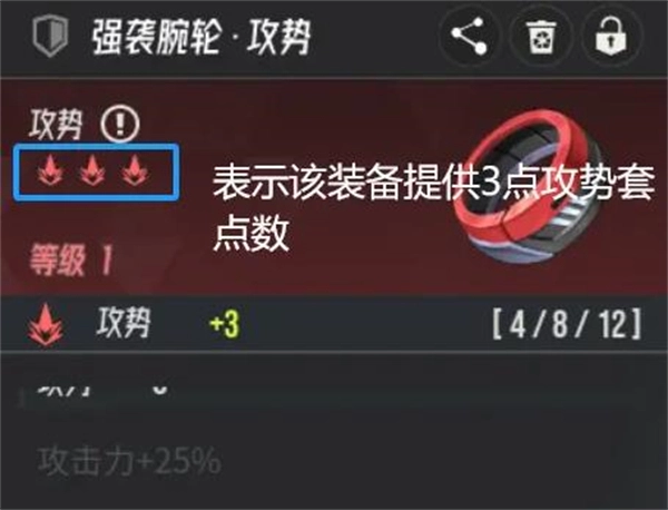 游戏内共设计了21种套装,每种套装都具备独特的效果。与传统依据已装备套装数量来判定属性的机制不同,这里采用“套装技能点数”来实现属性的获得与强化。以攻势套为例,它包含三级效果:当攻势点数累积到4点、8点、12点时,分别可获得10%、25%、45%的攻击力加成。装备在获取时,会随机附带1到3点套装点,具体通过装备图标下方显示的套装图标数量来体现;最终获得的效果等级,由所有已装备装备的套装点总和来决定。