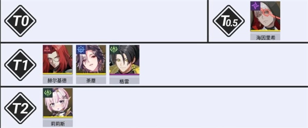 2、功能类角色:T0.5:海因里希。T1:赫尔基德、荼蘼、格雷、炀。T2:莉莉斯