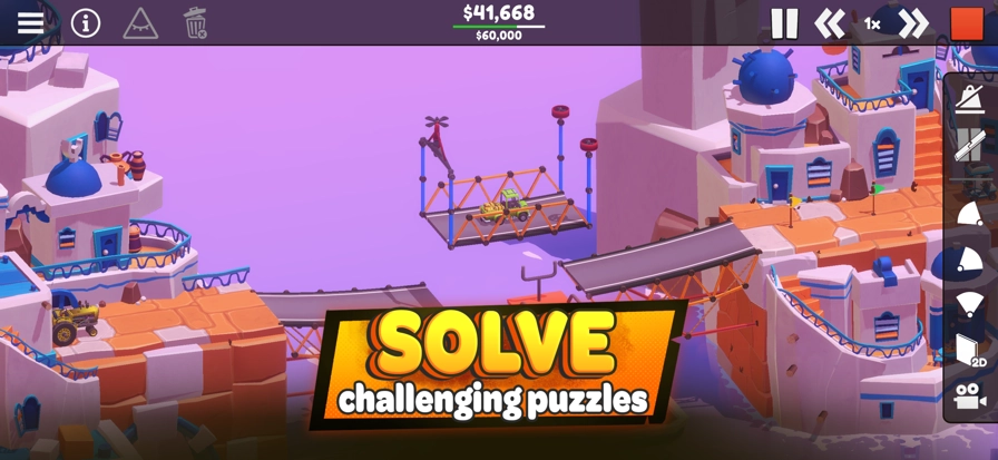 游戏的画面充满卡通感,操作也一直很简单,无论何时都能挑战关卡,只要展现出你的建造能力就可以了。