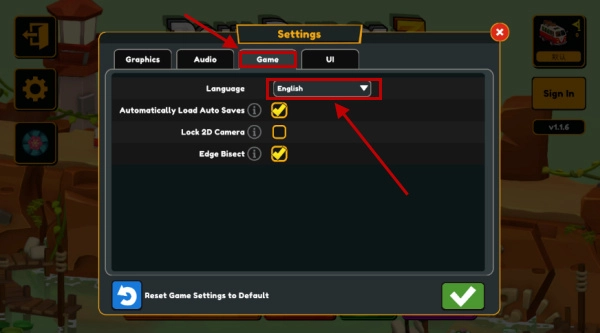 2、接着需要点击“Game”功能,然后选择下面的Language-Eeglish。