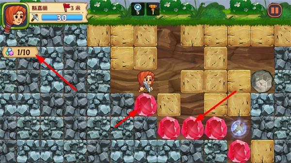 3、接着就可以操控角色去挖掘石头和获取宝石。