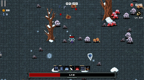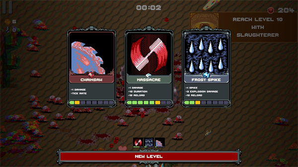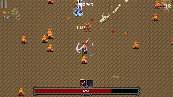 4、消灭恶魔怪物后会掉落红色经验球,拾取后可以提升等级,升级后能选择一个技能强化自己。