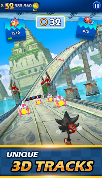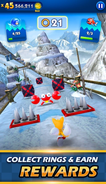 1、丰富多样的角色可以去选择使用,和索尼克以及他的朋友们联手,一起享受最精彩刺激的跑酷乐趣。