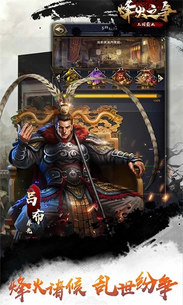 4、烽火之争是授权的国战新作,真实还原历史著名战役,三国著名文臣武将悉数登场,更有绝色美人相伴在侧,带您领略三国时期危机与机遇并存的神奇年代