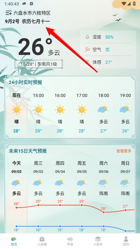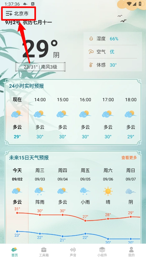 3、查看未来15天的详细天气预报,不管是计划远足还是度假,都能提前做好准备,让行程安排更加从容顺畅。