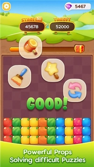 3、巧用道具闯关:遇到难点时使用收集的道具,创造消除优势(如大范围消除、重排方块),轻松突破障碍。
