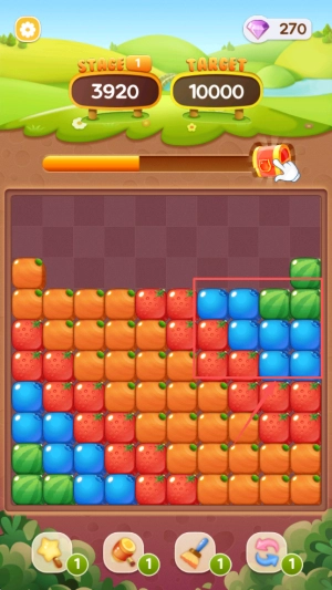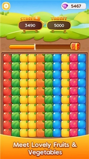 1、开启闯关准备:选择目标关卡,熟悉方块滑动操作,观察果蔬分布,明确 “匹配消除、收集道具” 的核心目标。