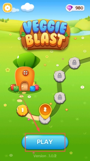 1、启动游戏:在980 VEGGIE BLAST PLAY界面点击PLAY按钮。