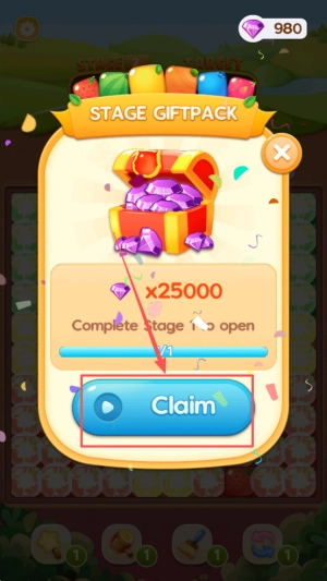 4、领取礼包:在980 STAGE GIFTPACK界面点击Claim领取25000奖励。