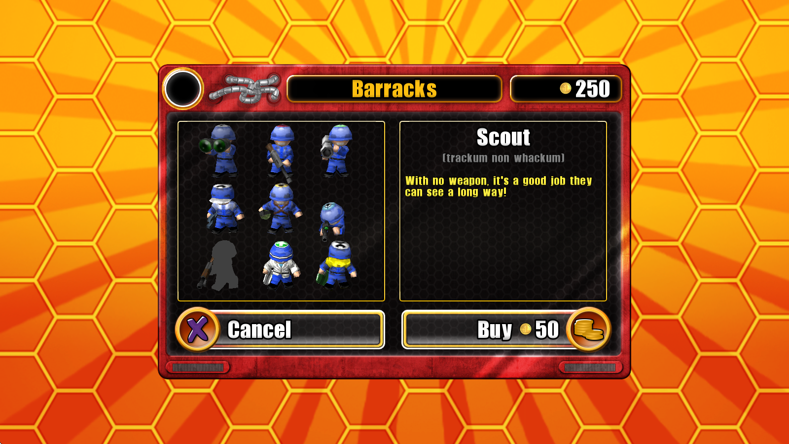《大大大战争》(英文全名Great Big War Game)是一款策略性极强的战棋游戏。在游戏里,你将化身队伍的最高指挥官,为麾下士兵制定周密的作战方案,在海、陆、空三大战场与敌人交锋。根据不同地形构筑防御工事、确保基地安全也是关键环节!你需要合理调配手中的金币:是生产大量士兵采用人海战术,还是稳扎稳打、逐步发展?所有决策都由你掌控!