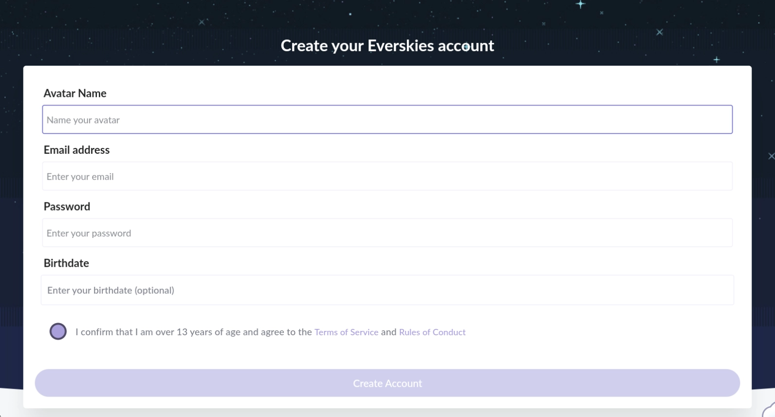 3、要是选择通过邮箱登录,那就得先创建账号,第一步是挑选一个初始形象。
