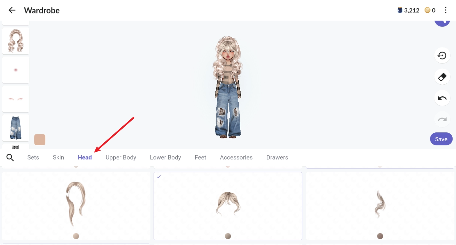 2、点击左侧的Wardrobe就能进入衣橱,在这儿可以给自己装扮形象。