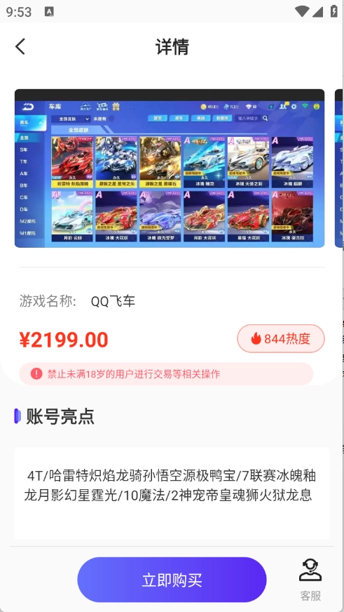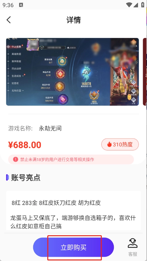 4、进入游戏账号详情页,点击“立即购买”即可。