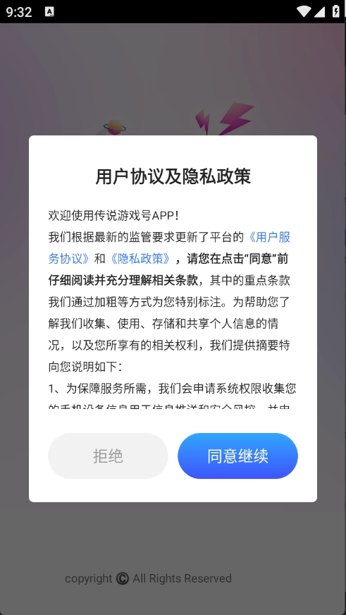 1. 用户首先需前往3G游戏网注册传说游戏账号,并查看且同意隐私政策与用户协议。