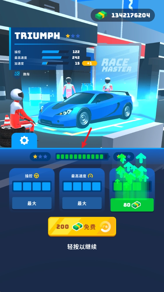 2、每辆车都设有三星的评级机制,当星级提升至满星后,车辆的星级会得到进阶,同时还会对汽车进行改装升级。