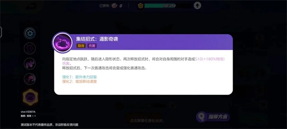 5、大招分支选择“增加移动速度”配合大招自带的隐身效果使耿鬼更加灵活,进场收割更加迅速。大招释放出来一瞬间有守住效果可以规避控制技能。合理使用大招生存能力会大大加强。
