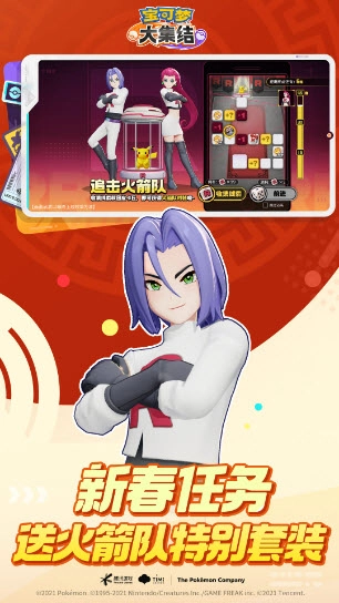3、新春任务 送火箭队同款套装 火箭队主题玩法和同款时装闪亮登场,完成活动任务即有机会获得火箭队套装!
