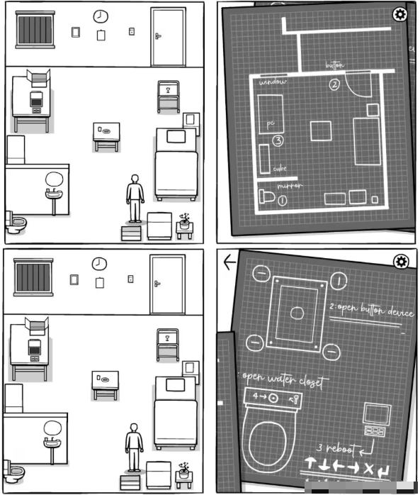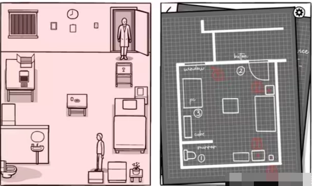 3、医生第一次进来警告。查看“查房”按钮,转动螺丝到提示位置,打开盖子。按照下图顺序转动按钮,再次引发警报。