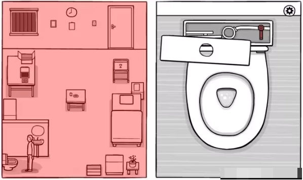 2、先去马桶,按4下抽水按钮。盖子移开,转动红色按钮多次,水溢出来,引发警报。