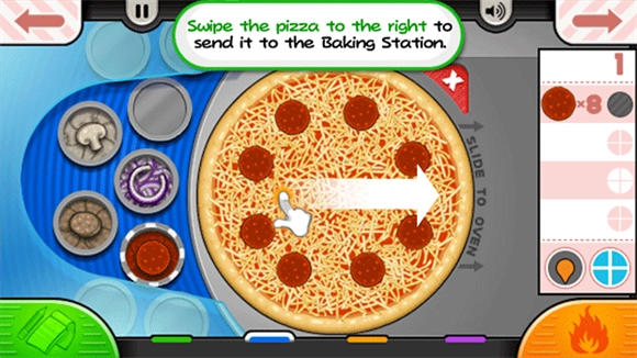 2、直观的控制:游戏设计了适合手机操作的控制方式,包括拖动、滑动和点击,让玩家能够直观地控制披萨的制作过程。