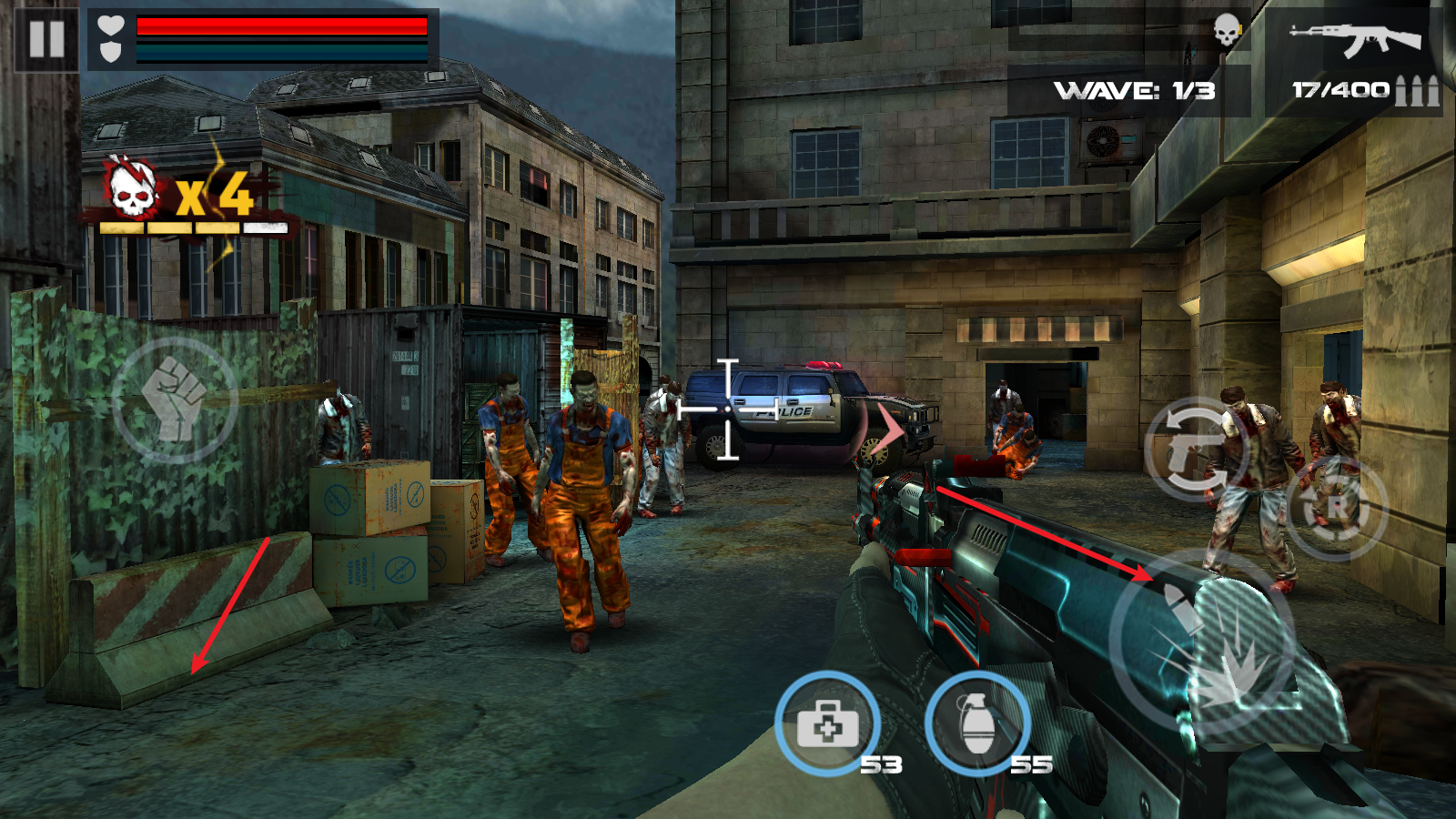 1、海量关卡待你挑战,你将遭遇一波接一波的僵尸侵袭,凭借疯狂火力扫射它们,把这些僵尸全部消灭。
