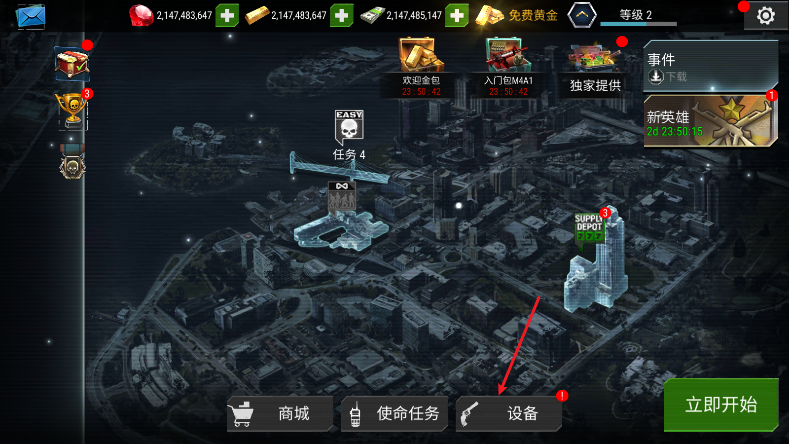 1、首先我们需要选择合适的关卡进行挑战,每一关都会给你推荐你合适的武器哦。
