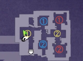 3、红字①代表此处有一个红帽子+俩个蓝帽子+一些黄帽子,地图分为俩处只有一个红帽子的区域。