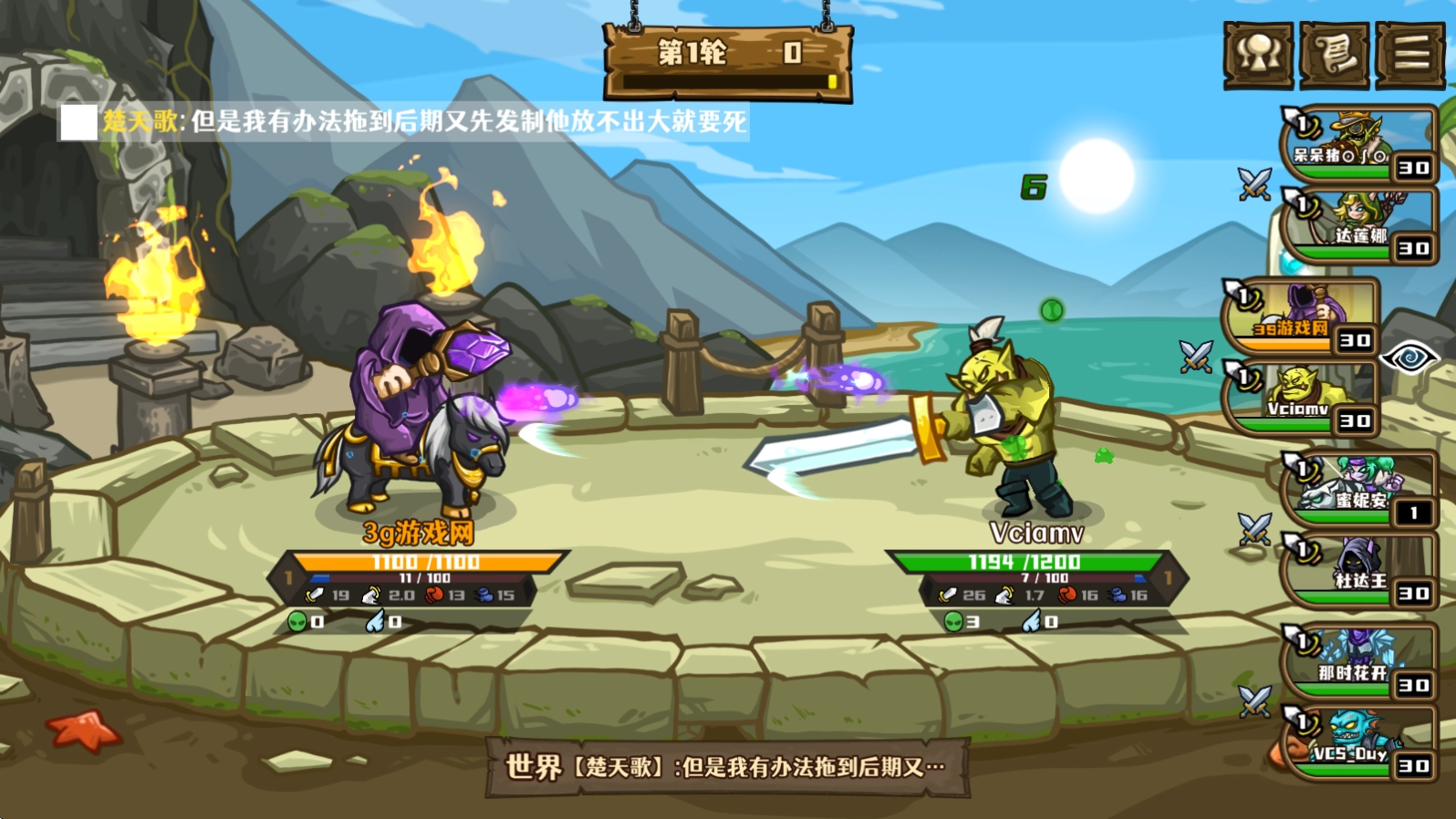 5、接着就会开始战斗,随机匹配其他玩家进行战斗,下发蓝条满了之后就会自动释放技能。