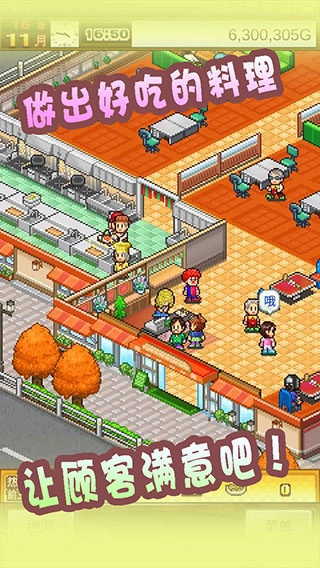 1、像素画面设计带给玩家更好的体验,享受游戏美食店铺经营乐趣