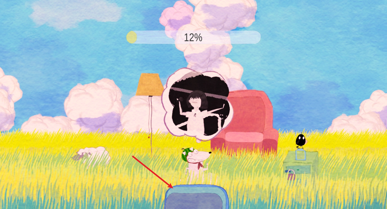 1、首先我们来到下方这个位置,点击靠近后会出现互动的手掌,点击后会出现一段动画,然后增加进度。