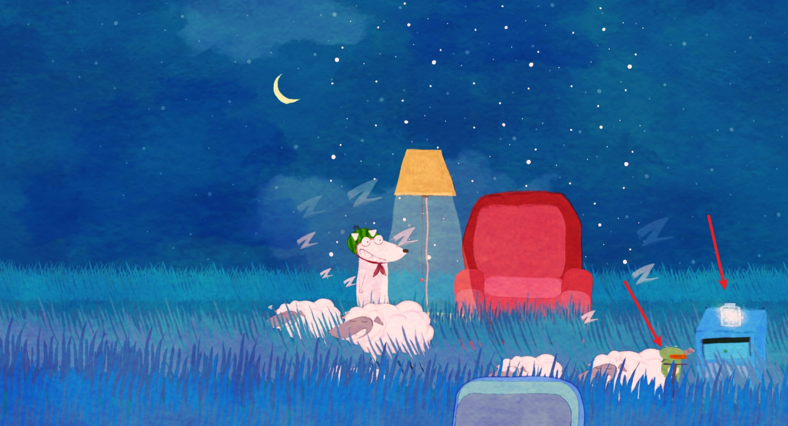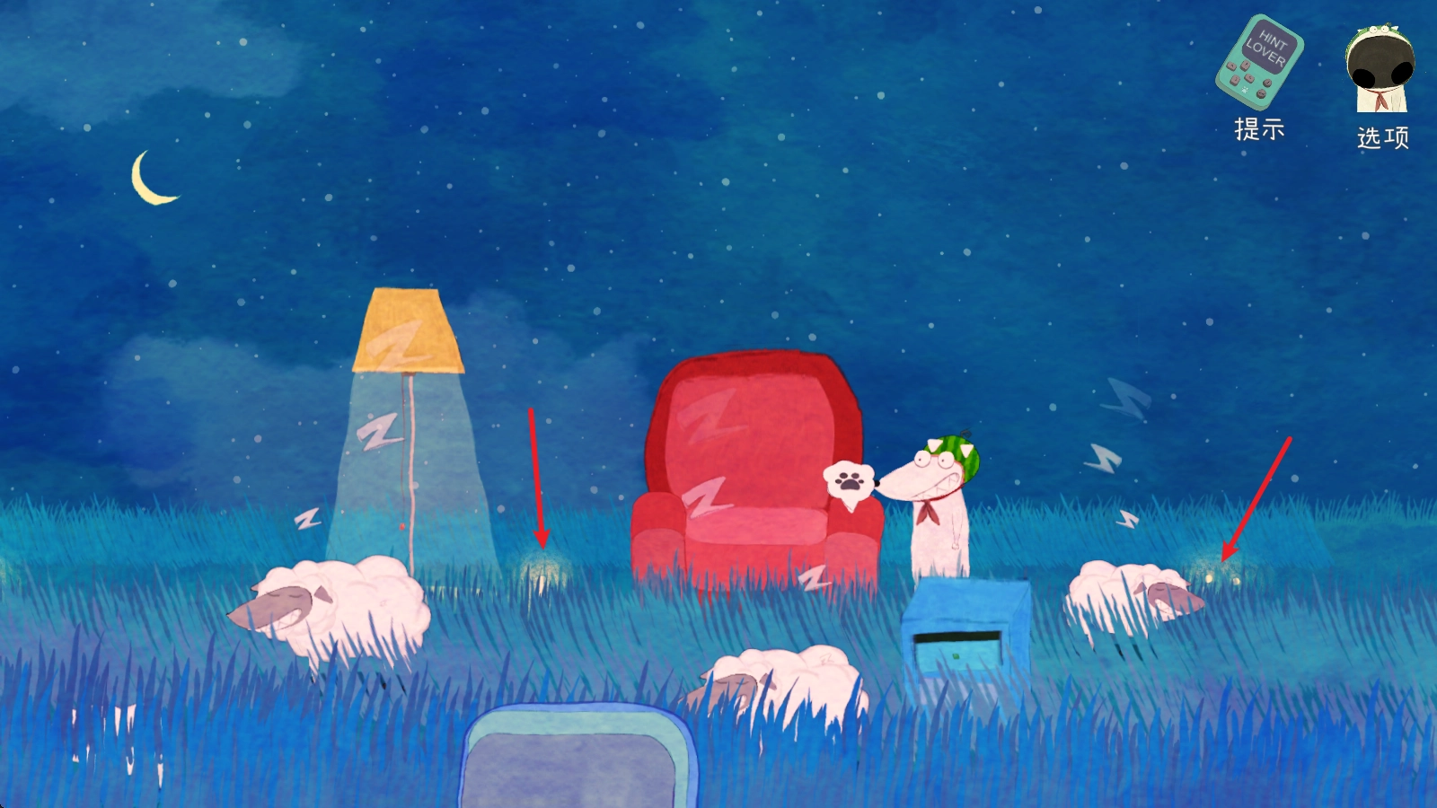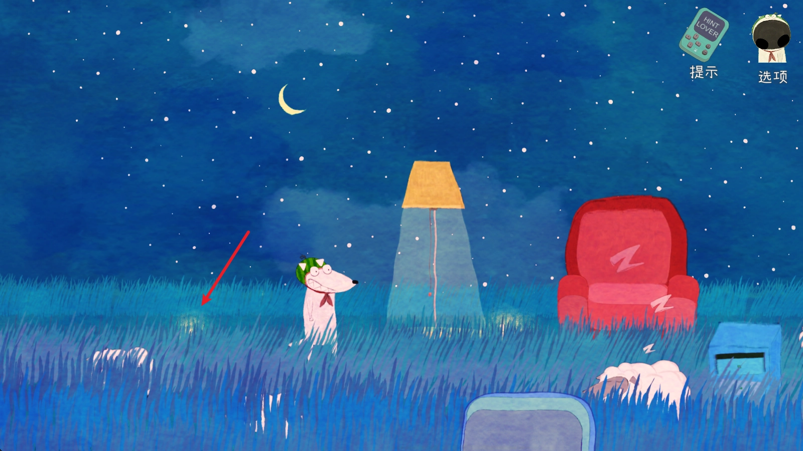 7、接着拿起瓶子,找到三处有萤火虫的位置,将它们装入瓶中,位置如下图所示,其中中间的萤火虫需要将沙发移开才能看到。