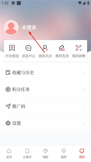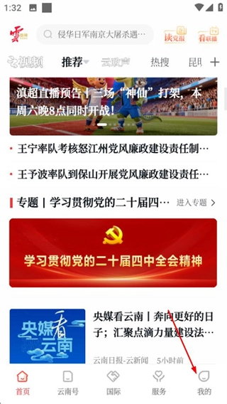 1、打开云新闻APP,在首页找到底部导航栏,点击其中的“我的”选项,即可进入个人中心页面。