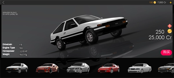10、点击购物车图标可进入商店选购车辆,车辆可使用游戏币或金币购买,这两种货币均能在游戏内获取。