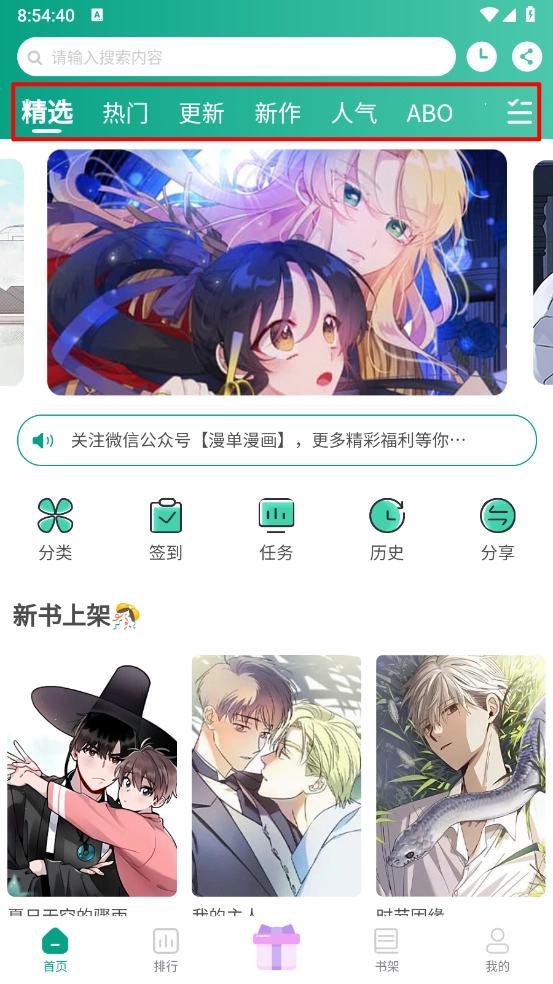2、在首页涵盖了多个漫画板块的资源,滑动选择喜欢的漫画。