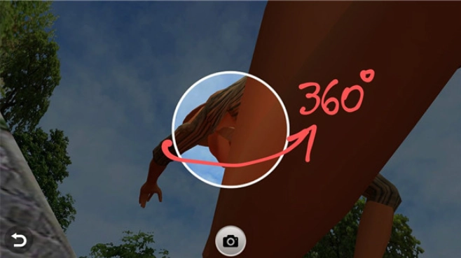 4、接着进行360°转动(调整角度),找到一个能与人物重叠的视角来拍摄风景,如此便可得到风景头像。