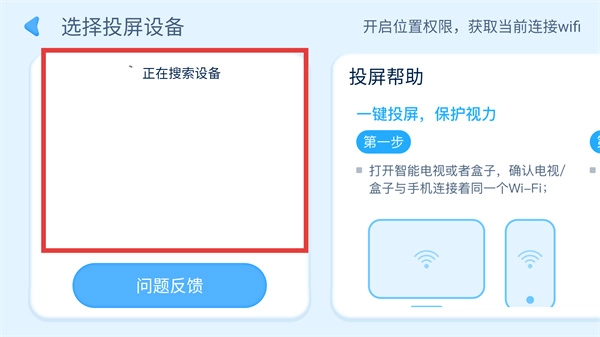 4、点击【TV】后进入投屏页面,需保证设备与手机连同一【Wi-Fi】,等待【正在搜索设备】完成后选择对应设备投屏。