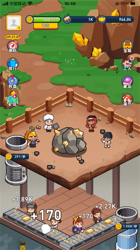 1、在这款游戏里,你将开启矿物加工厂的经营之旅,用心管理工厂、拓展业务规模,还得把稀有的黄金藏品送往展览厅展示!想要让工厂收入不断增长,就得招募更多工人来提升生产效率与产值!