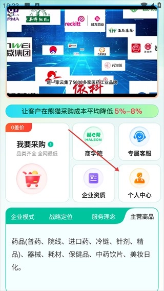 1、进入熊猫药药首页,点击【个人中心】选项。