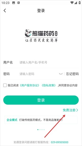 2、在登录页面,点击【免费注册】选项。