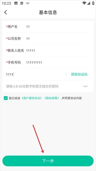 4、确认基本信息已填写完整后,点击【下一步】按钮,即可完成公司的创建操作。