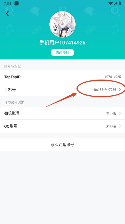 点击手机号;