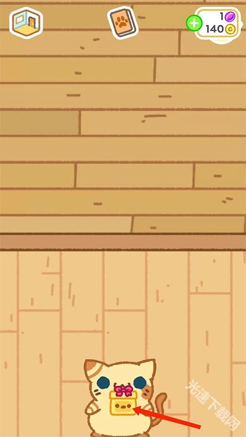 9、如图所示,小猫已经回到这里了,点击它带回来的【礼盒】。