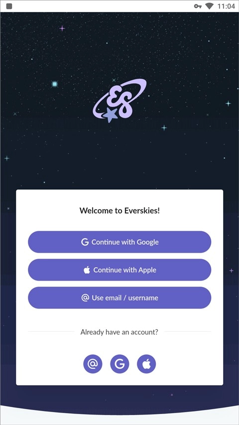 1、打开Everskies(即“永远的天空”)这款虚拟装扮游戏,该游戏需要科学上网才能启动,首先点击“@ Use email”进行账号注册;