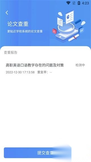 5、提交论文进行查重,等待检测结果即可。