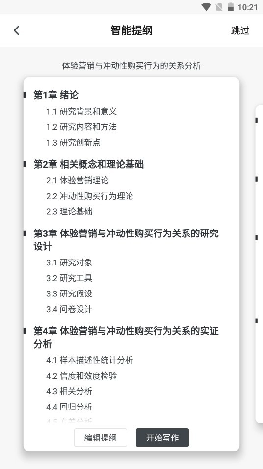 3、用户能够自由地对系统基于的提纲进行编辑修改,若满意提纲,就可开始写作。