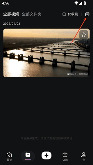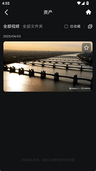 1、用户可以前往的资产界面下查看到需要的已生成好的视频资源,然后点击右上角的勾选按钮