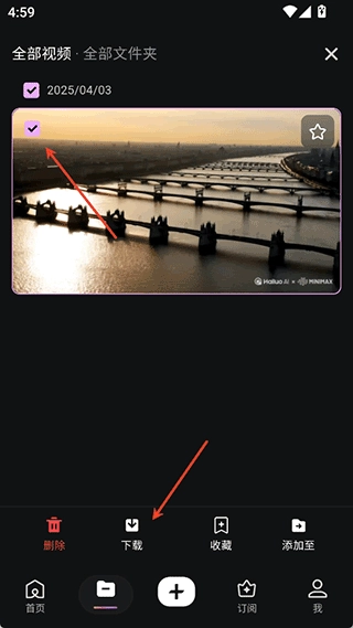2、接着就会在底部出现按钮,用户在视频浏览界面左上角继续勾选下,然后再点击这个按钮