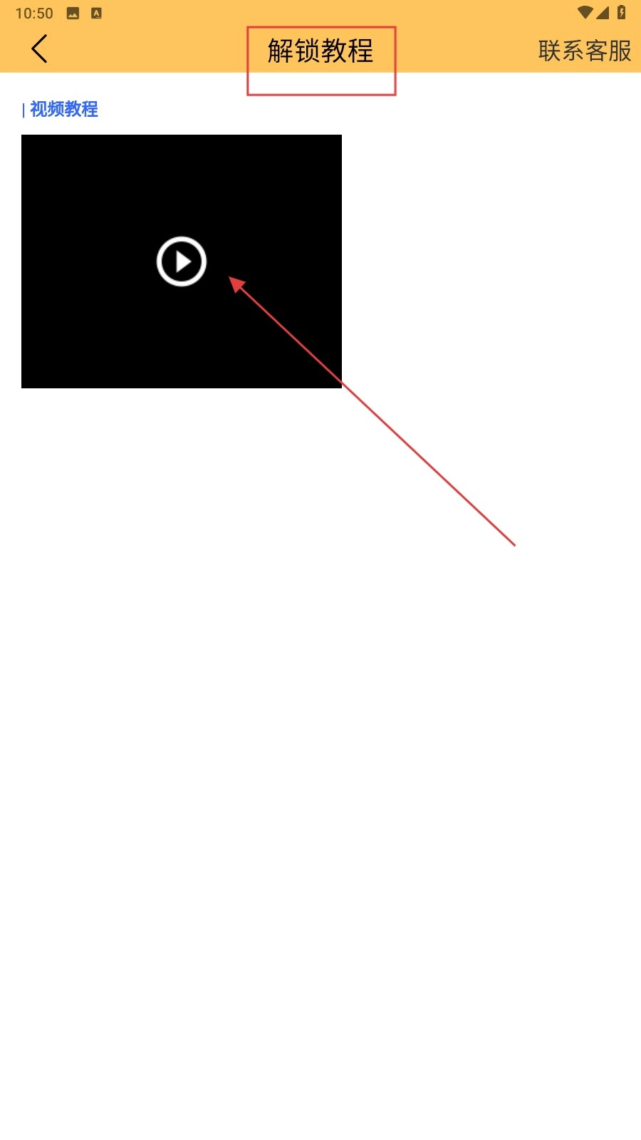 2、进入【解锁教程】页面,点击视频播放按钮查看解锁操作视频。