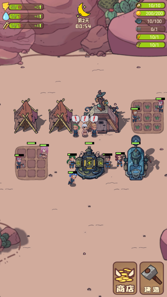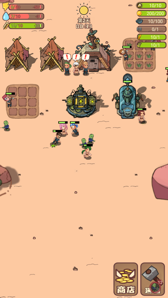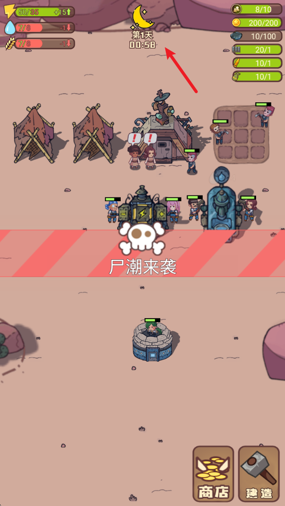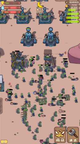 3、夜晚会有一波接一波的尸潮袭来,玩家得合理布置防线,安排居民驻守,打造出坚不可摧的防御阵地。